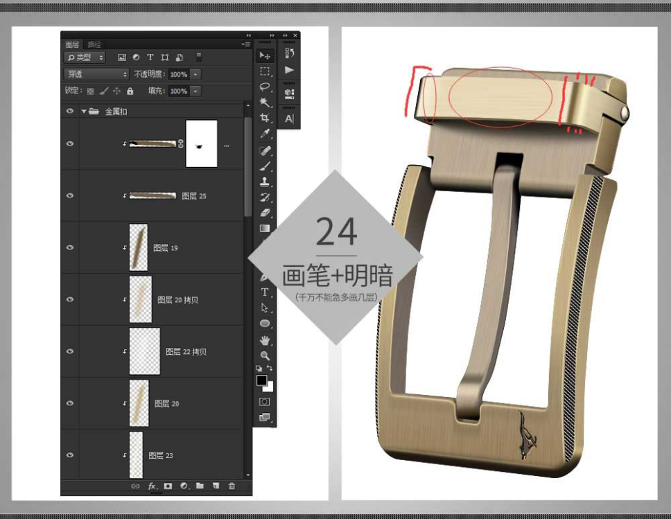 把PS为淘宝金属皮带扣图片进行修图美化的流程分享给脚本之家的各位朋友。金属皮带扣修图和美化的整个流程包含素材、抠图、划分、杂色 + 动感模糊、杂光 + 蒙版等11个部分,关键是实用性