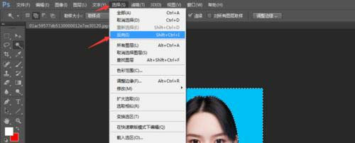 随后到导航栏点击“选择”—“反向”(快捷键是Shift + Ctrl + I)。