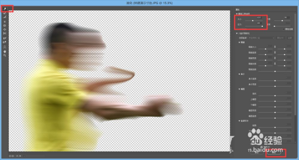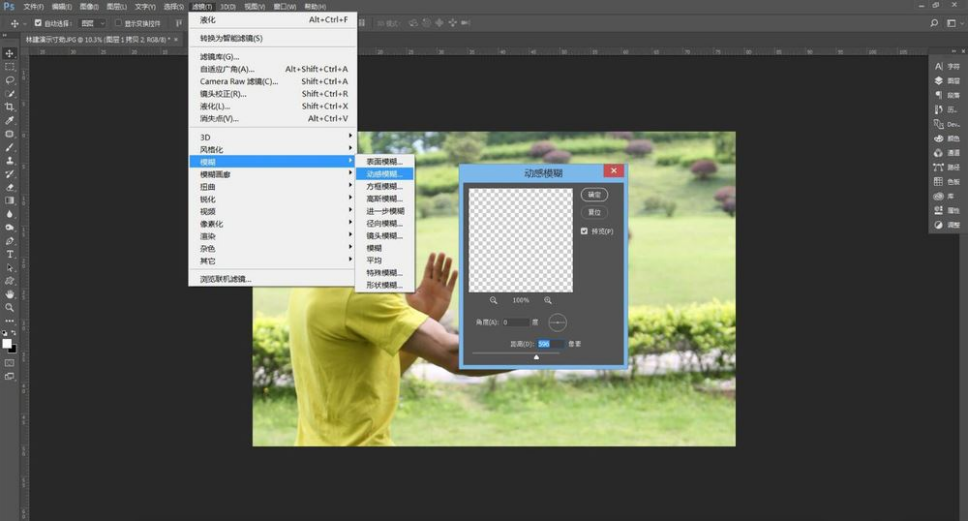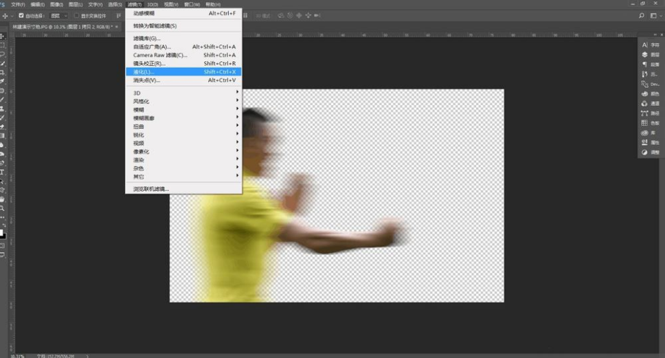 选取第一个复制图层,选择动感模糊接着进行液化。