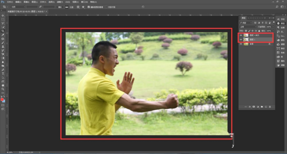打开 ps 软件并打开图片,将主体人物抠出后复制两层。