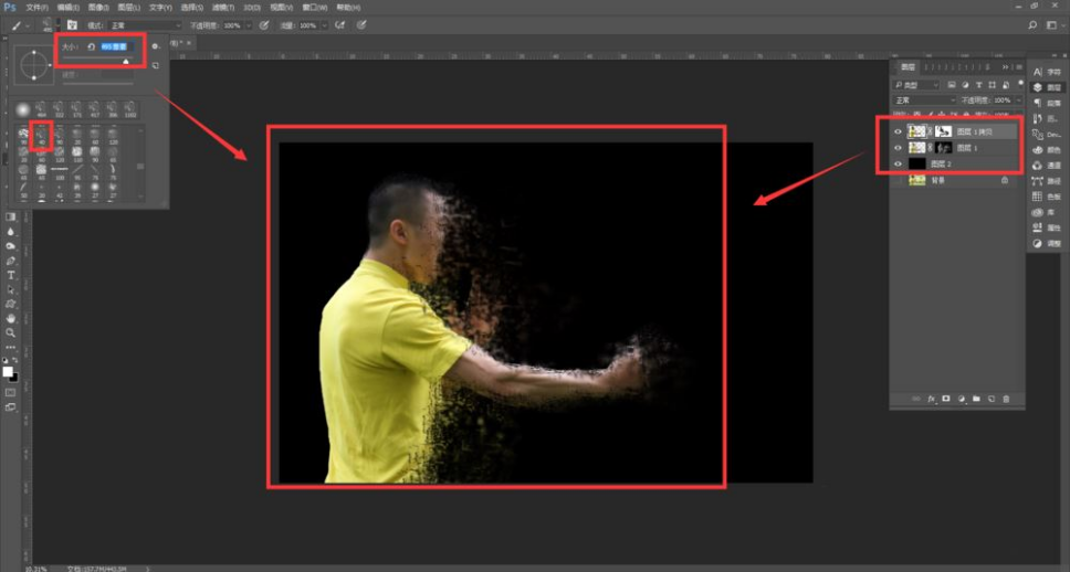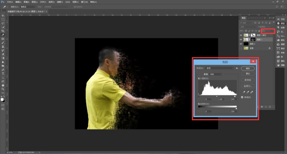 调节第一个复制图层蒙版的不透明度、色阶等数值,让破碎效果看上去更自然,如此便完成了。