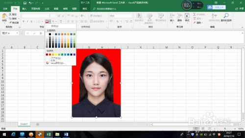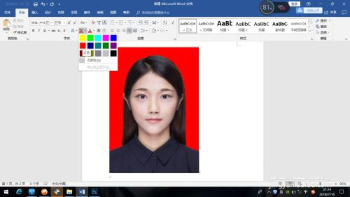 接着点击“开始”一栏,在字体栏的“填充颜色”那里,点击想要更改成的颜色,就能完成证件照背景颜色的更改。