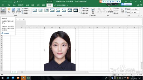 | 方法1——Excel1 把证件照插入到Excel表格里,也就是“插入→图片”,点击“格式”这一栏左上方的“删除背景”选项。